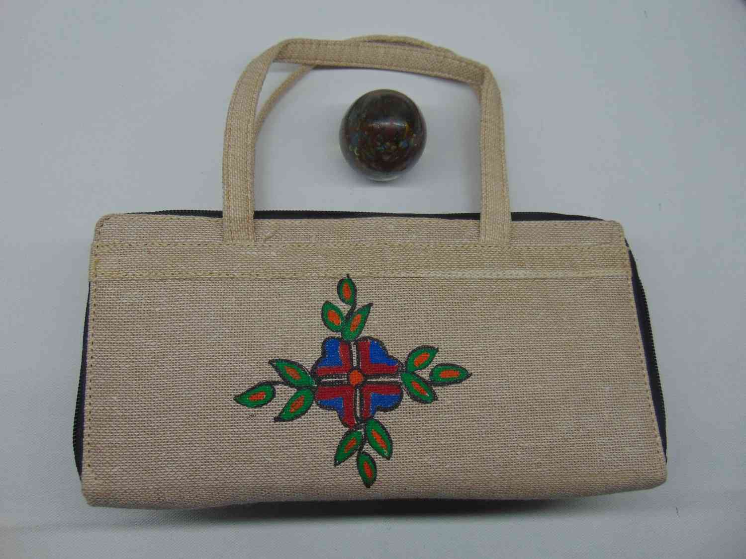 Women's Handicrafted Madhubani Purse:Beige