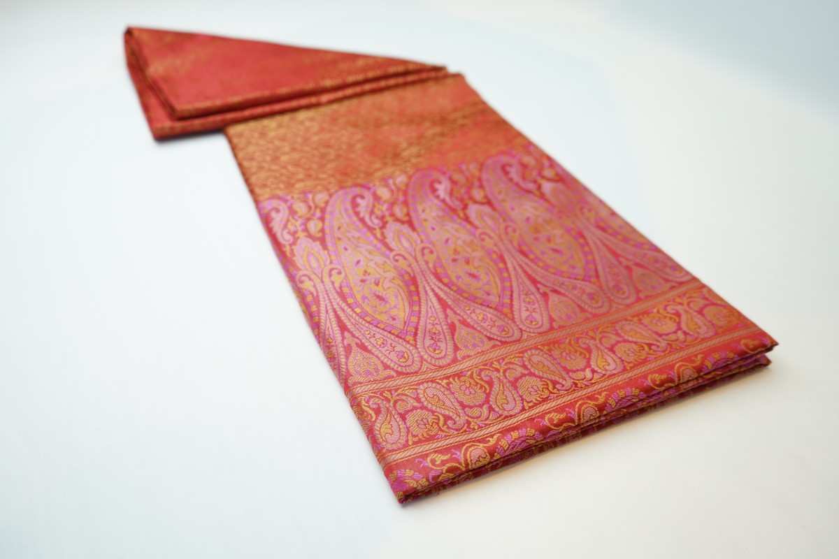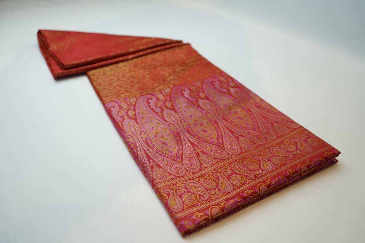 Elevate your style with our light red Handloom Himroo Silk Saree. This exquisite saree boasts a unique blend of materials, resulting in a comfortable and luxurious drape. Perfect for any occasion, this saree will make you stand out with its beautiful peach color and intricate handloom weaving